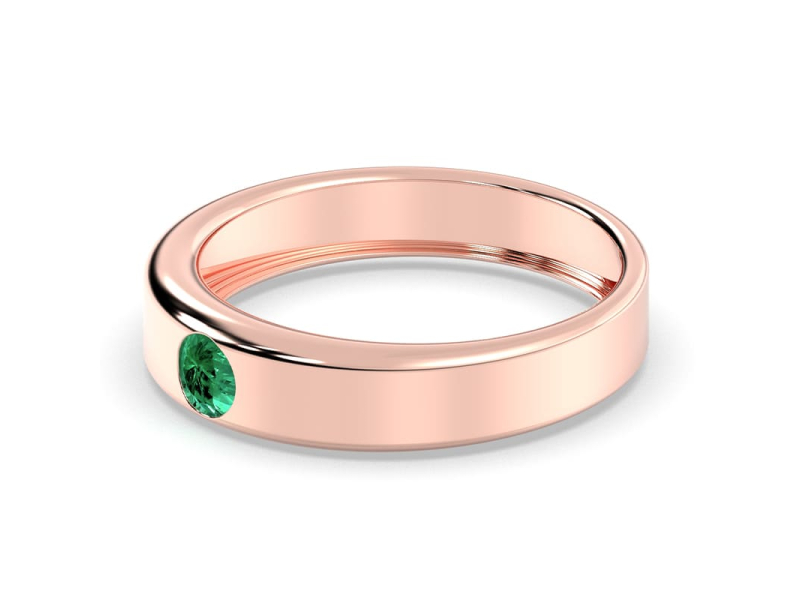Une alliance épurée, soulignée d’une émeraude, pour ceux qui aiment la sobriété avec une touche personnelle.