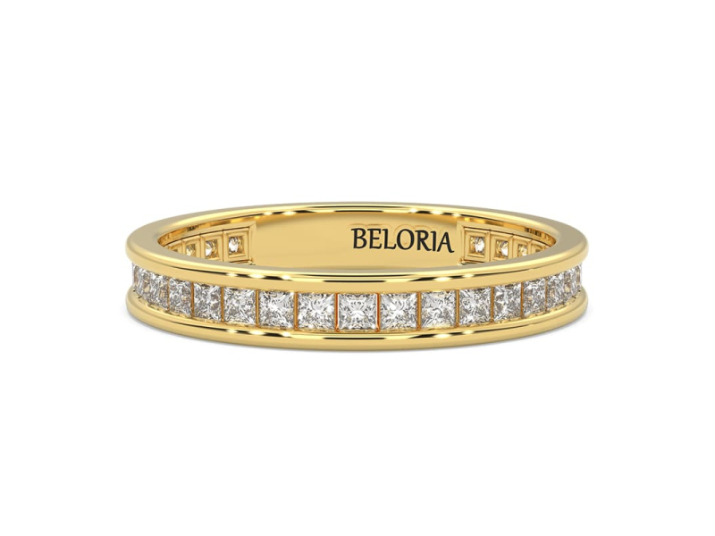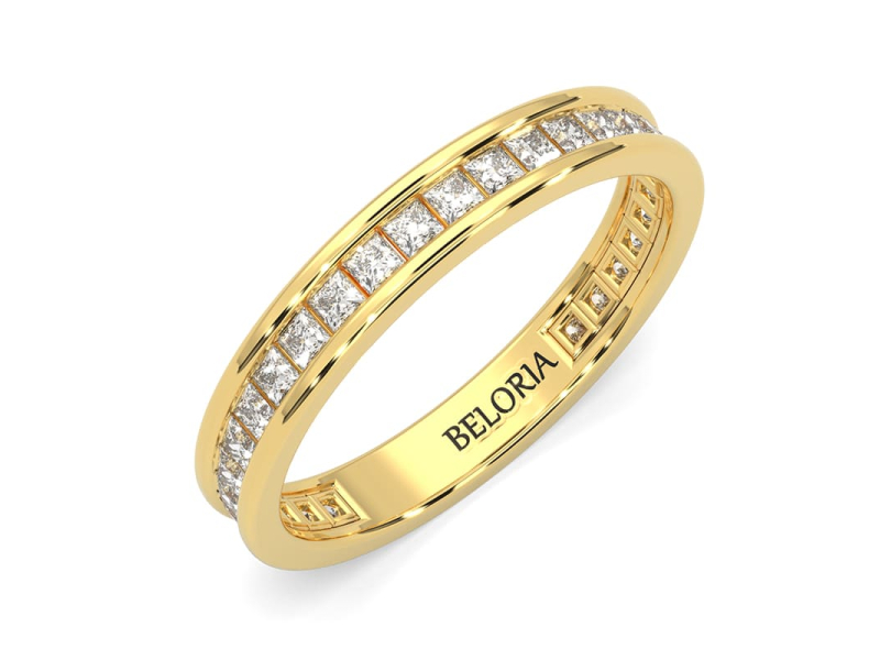Alliance en or jaune sertie tour complet diamants princesse