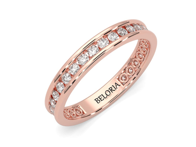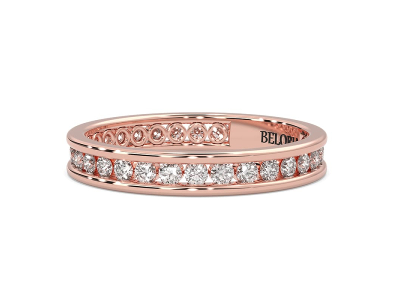 Alliance en or rose une sertie tour complet diamants princesse