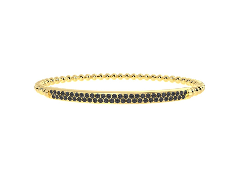 Ce bracelet élastique pavé de diamants noirs associe confort, finesse et modernité. Sa silhouette épurée et son éclat sombre en font une pièce facile à porter, du quotidien aux occasions plus formelles.