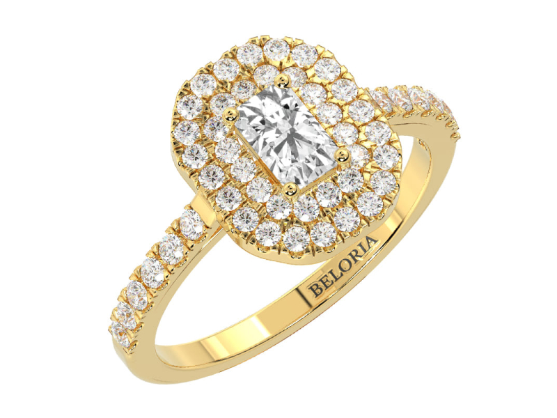 Solitaire Diamant taille Emeraude Double Halo - Maison Beloria