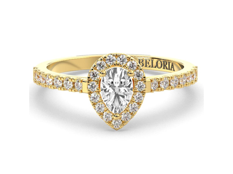Bague de fiançailles en Or 750 Diamant Poire entouré - Maison Beloria